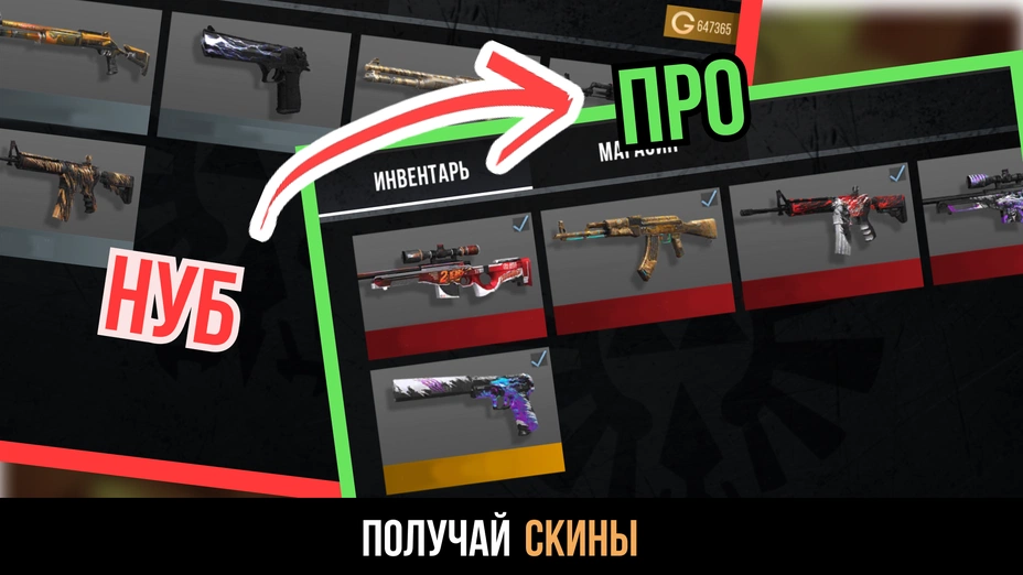 - 📦 Коллекционирование — собирай полные наборы скинов на любимое оружие и хвастайся перед друзьями.